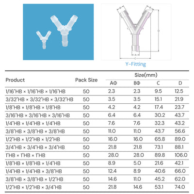 Lifemeta™ SF Polypropylene(PP) Pharmaceutical Y Fittings 3-Way Joint 50/pk